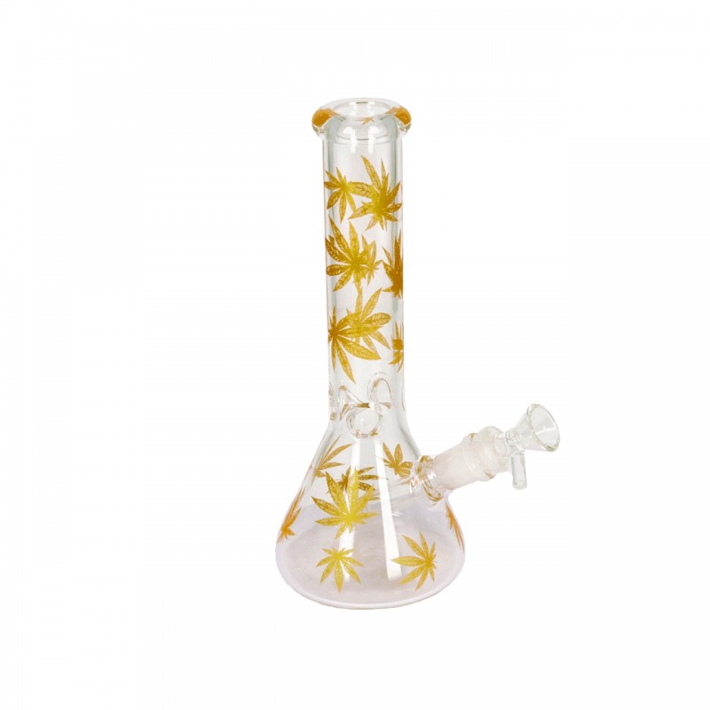 AK 345 839 Bongo Vidro Transparente c/ Folhas Douradas