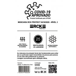 Máscara de Proteção Reutilizável para Adulto; 25 Lavagens; Dupla camada; Elásticos Auriculares; Ajustável ao Nariz; 17 a 20cm x 9 a 11cm; 97% Algodão e 3% Elastano